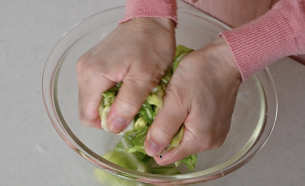This method is called Shio-Momi, a gentle salt massage we use all the time in Japan. It’s also a kind of easy meal prep—you can make it ahead and enjoy vegetables anytime.