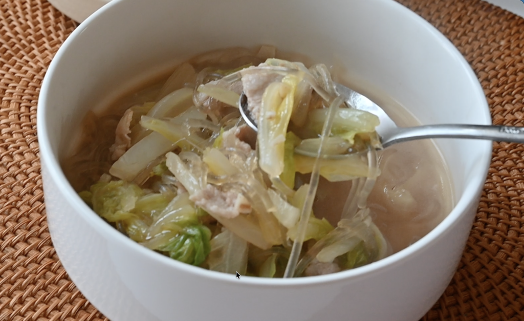 - Napa cabbage → quick soup with pork and glass noodles